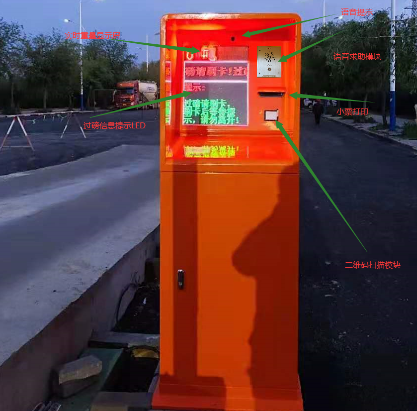 功能点:集成了仪表重量实时显示,LED提示,语音提示,自助刷卡,对讲求助,录相,票据打印功能等。