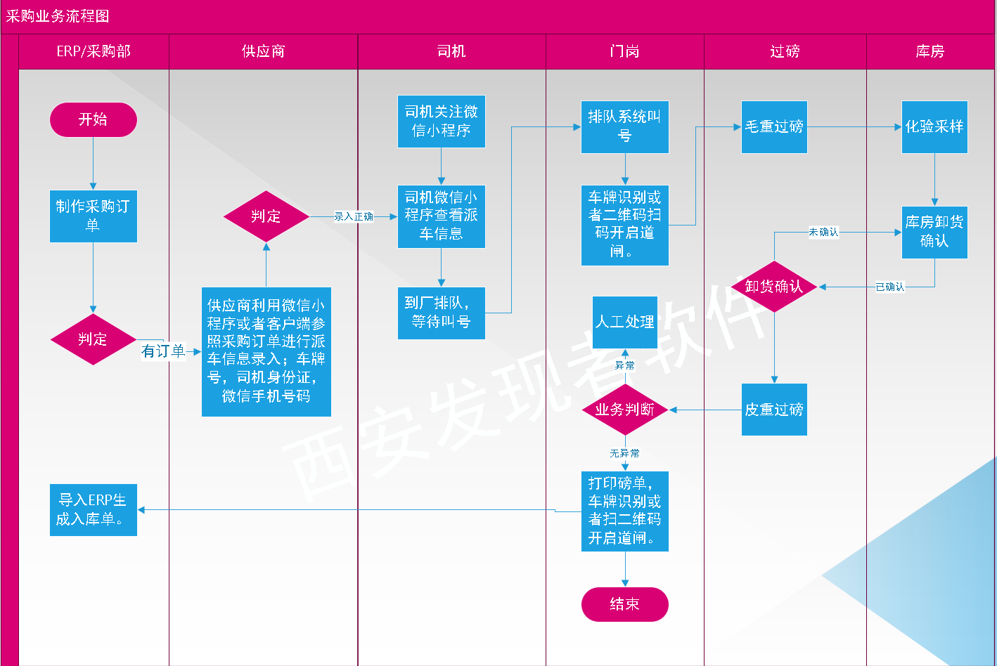 功能点:系统与门禁系统相关联,根据提前登记的车辆信息,通过门禁车牌识别系统自动识别,控制送货车辆自动出入厂。提高出入厂效率。