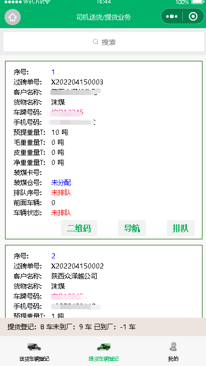 司机微信小程序排队、过磅