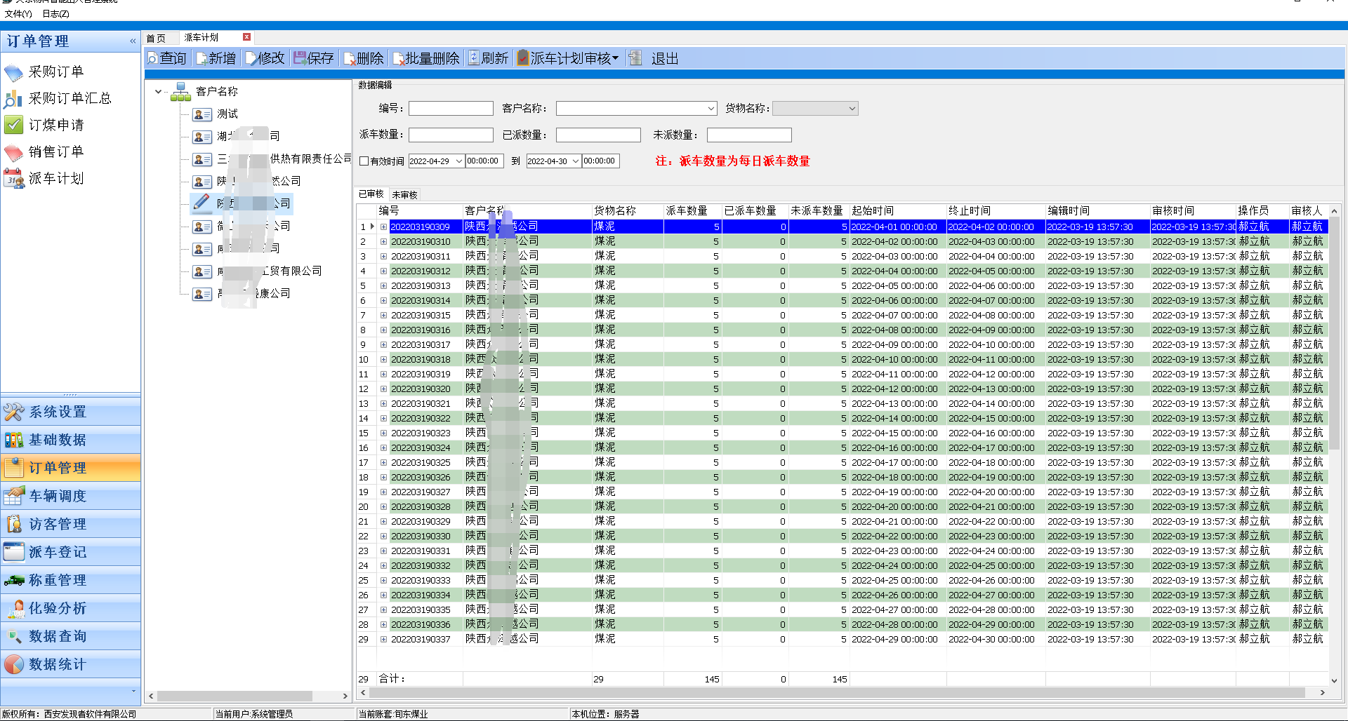 客商自助派车,企业通过订单与派车计划(例如某客户某品种每日最大派车上限)进行控制